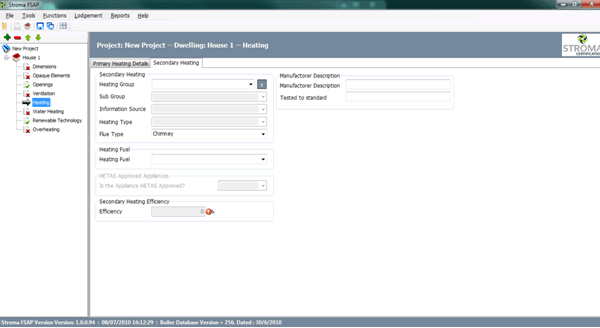 In this section you are required to enter the type of primary and secondary heating, the controls and efficiencies.